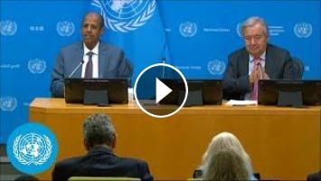 The Secretary-General and Mahamoud Ali Youssouf, the African Union Commission Chairperson, spoke to reporters following the annual African Union United Nations Conference.