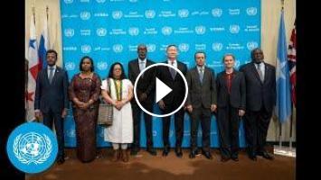 The flags of the five newly elected members of the United Nations Security Council — Latvia, Democratic Republic of the Congo, Liberia, Bahrain, and Colombia – were officially installed today (02 Jan).